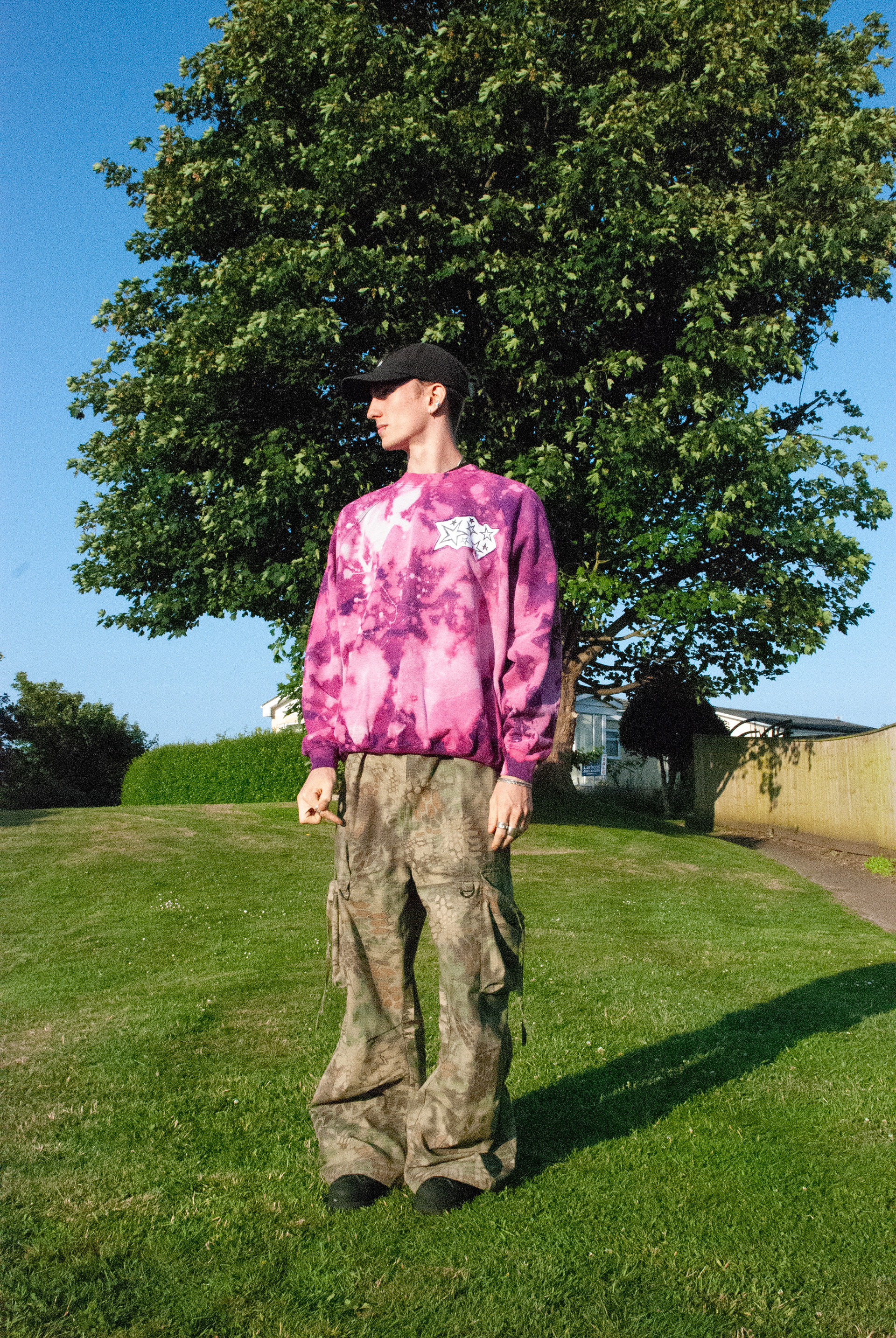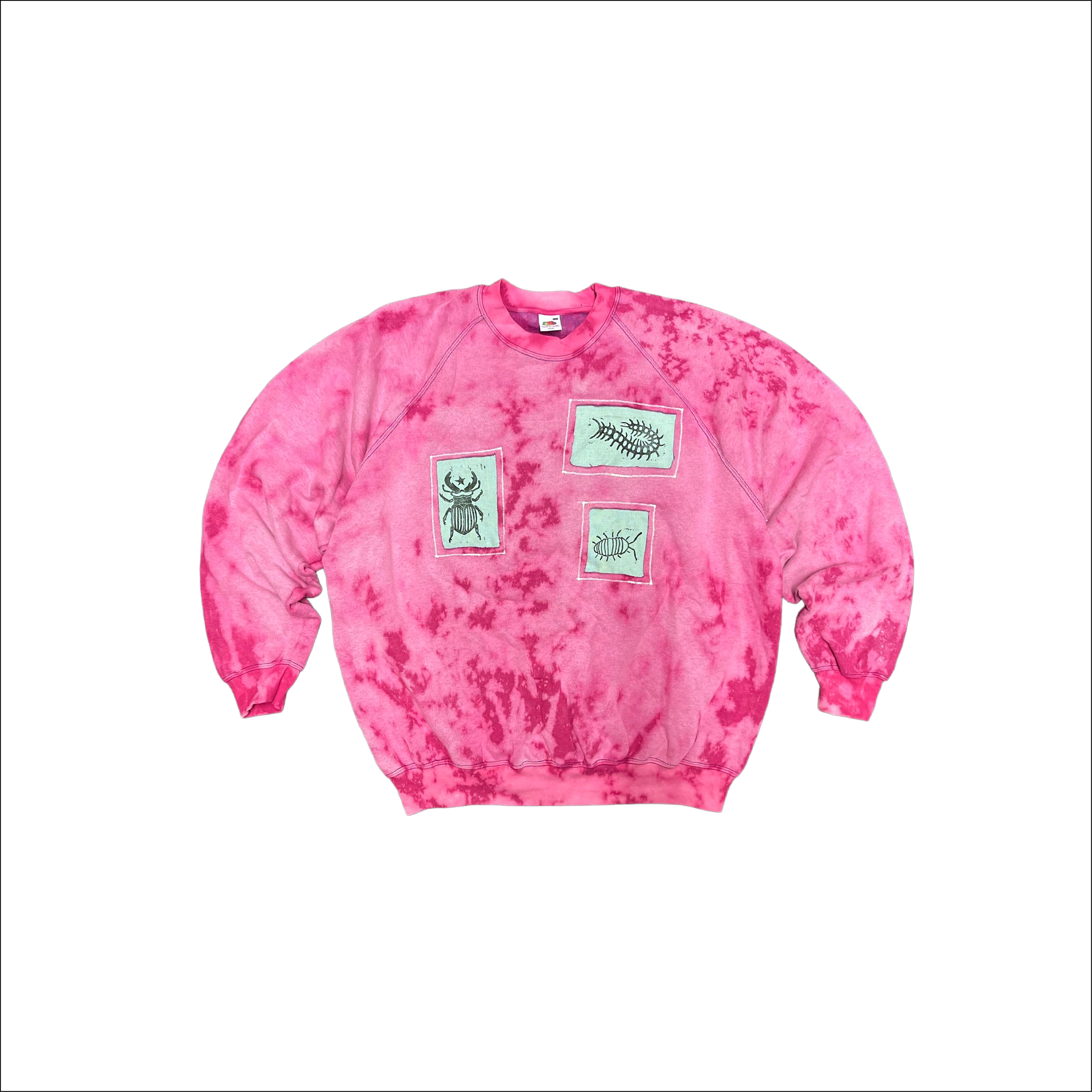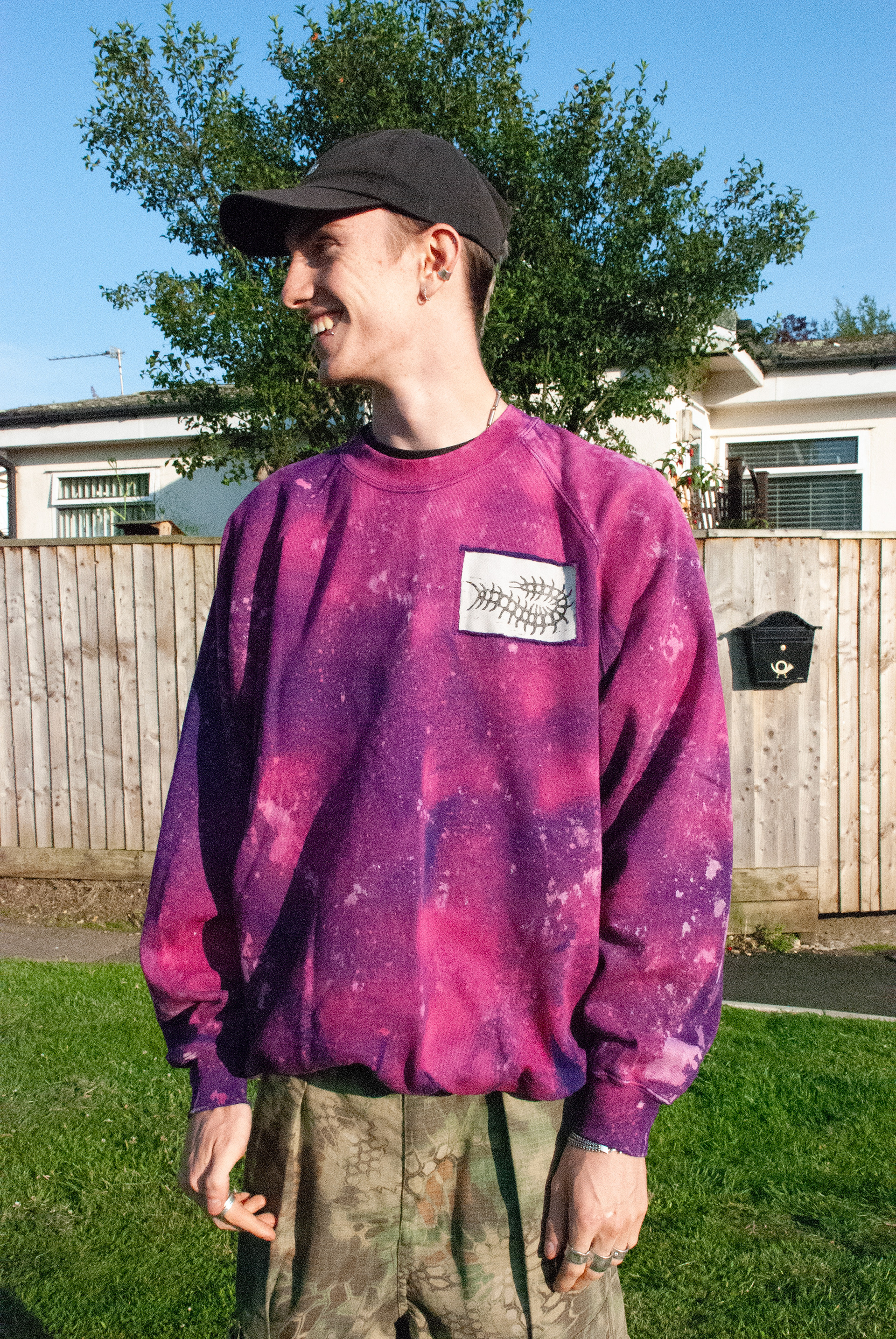 Unique fashion pieces I created, using lino-printed patches of my original designs and bleach to create vibrant and one-off pieces.